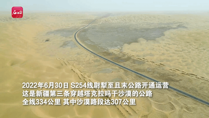 2022年6月30日,尉犁县至且末县沙漠公路正式通车,全长334公里。其中沙漠路段为307公里,是新疆维吾尔自治区"十三五"规划的"6横6纵"公路网主骨架的重要组成部分。