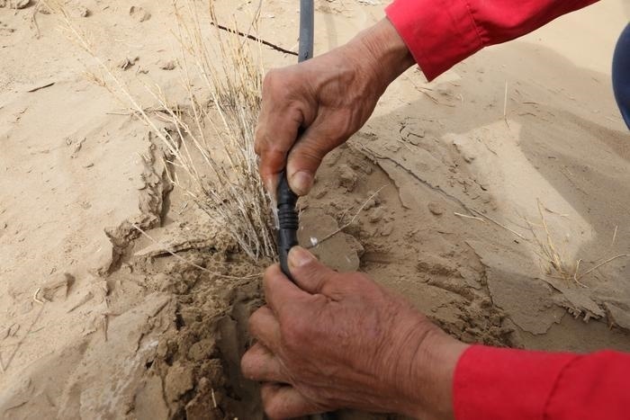 公路需要人工长期值守,207个养护工人分散在562公里道路旁,守护防护林。他们每天在温差大、日照强的沙漠中徒步维护管道和植被,才最终确保公路畅通。每年3月初到10月底,绿化人员进行养护、灌溉,每年施三次肥。