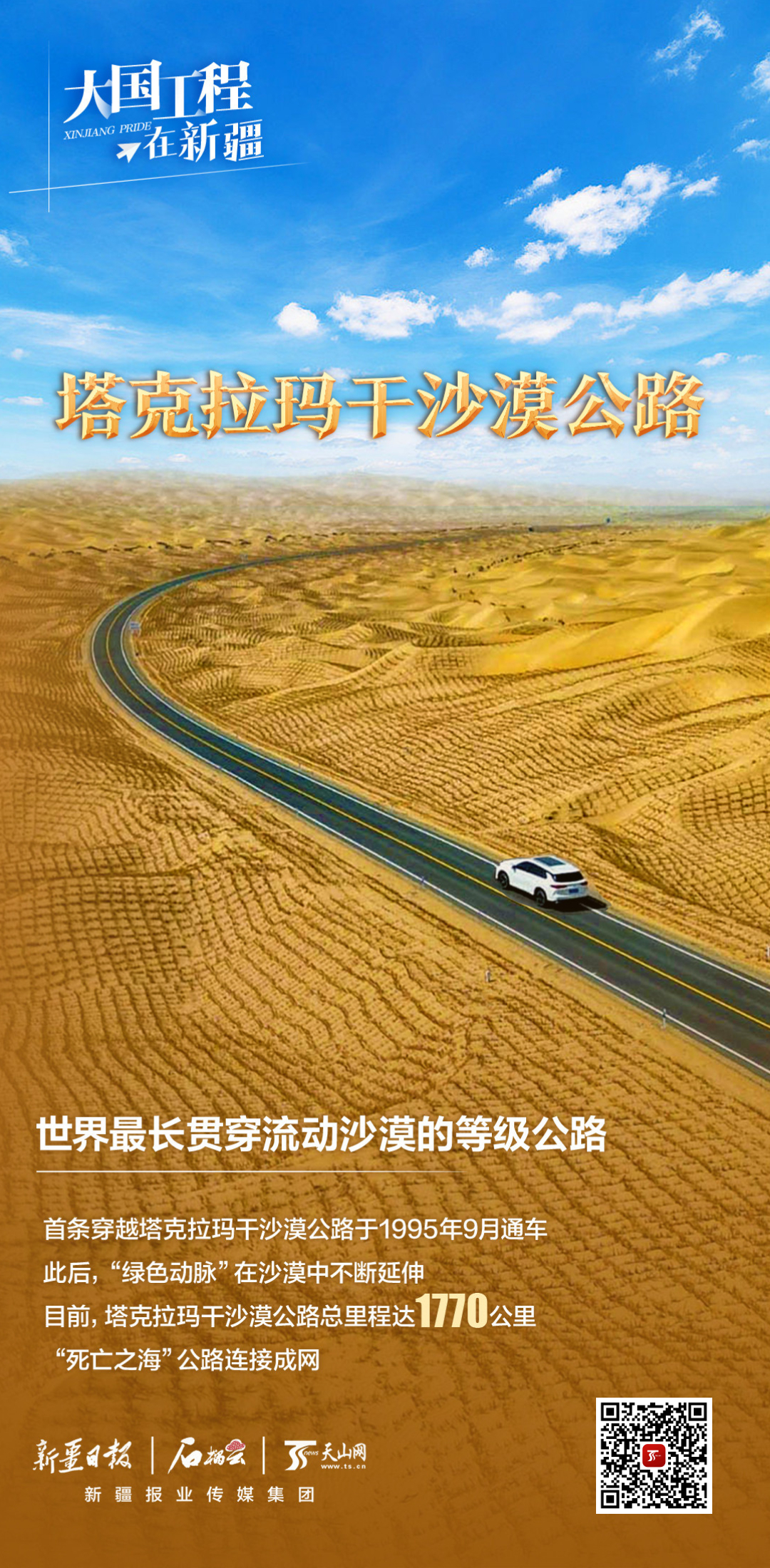 目前,塔克拉玛干沙漠公路总里程已达1770公里,“死亡之海”里公路已经连接成网。
