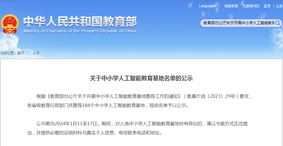 A+ A. A-天山网-新疆日报讯 1月11日,教育部网站对中小学人工智能教育基地名单进行公示,共184个中小学入选,其中新疆有12所。