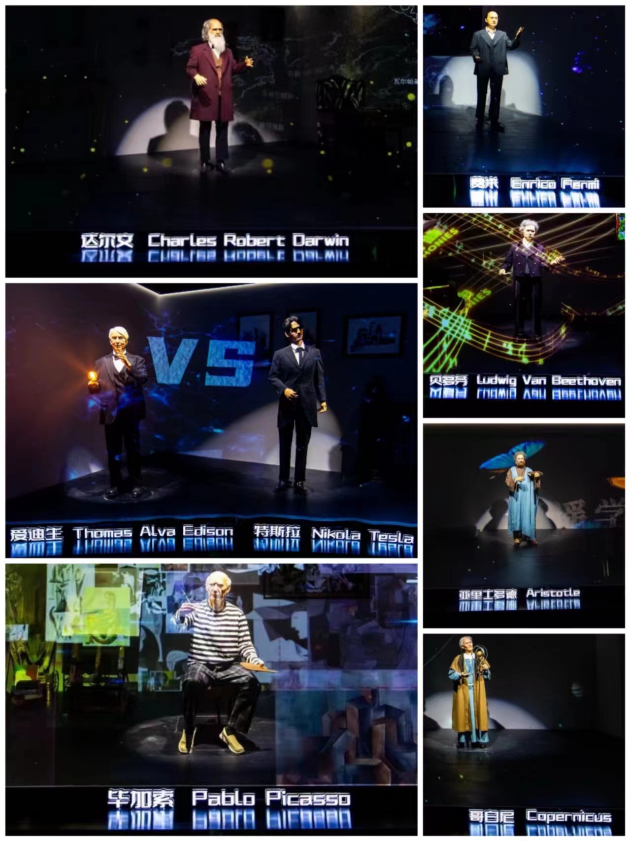 大连EX未来科技馆内陈列的部分名人仿生人形机器人。
