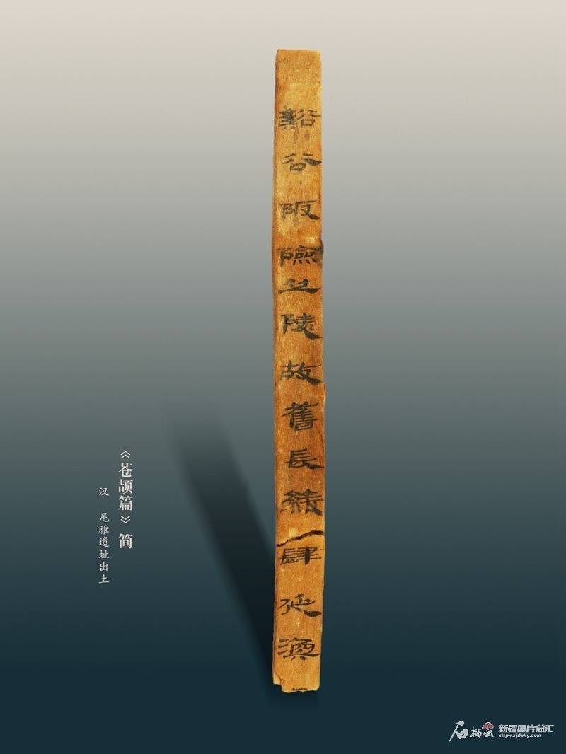 两汉时期,中央政府采取设官建制、颁赐印绶、封赏赠赐、屯田戍守、安辑诛伐等,统辖和治理天山南北(西域)军政事务,密切了西域同中原的政治、经济文化联系,丝绸之路得以拓展。尼雅遗址位于新疆塔克拉玛干沙漠腹地。据考证,这里是《汉书·西域传》中所记载的丝绸之路南道上重要的绿洲城邦——精绝国所在之处。此遗址除仓颉篇汉简之外,还出土了大量的汉简、木牍文书,为研究古代中原汉文化在新疆地区的传播、推广等具有重要意义。