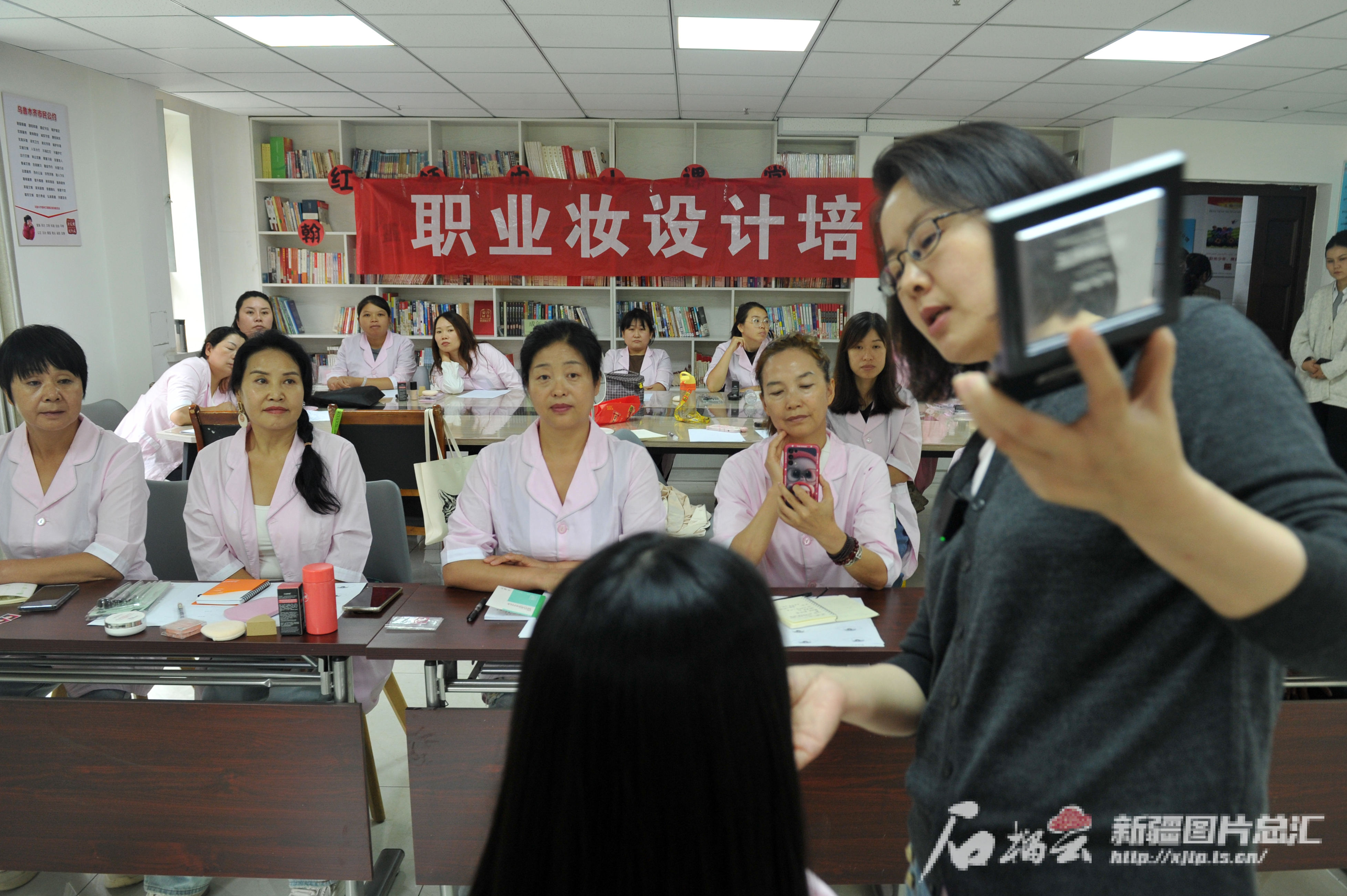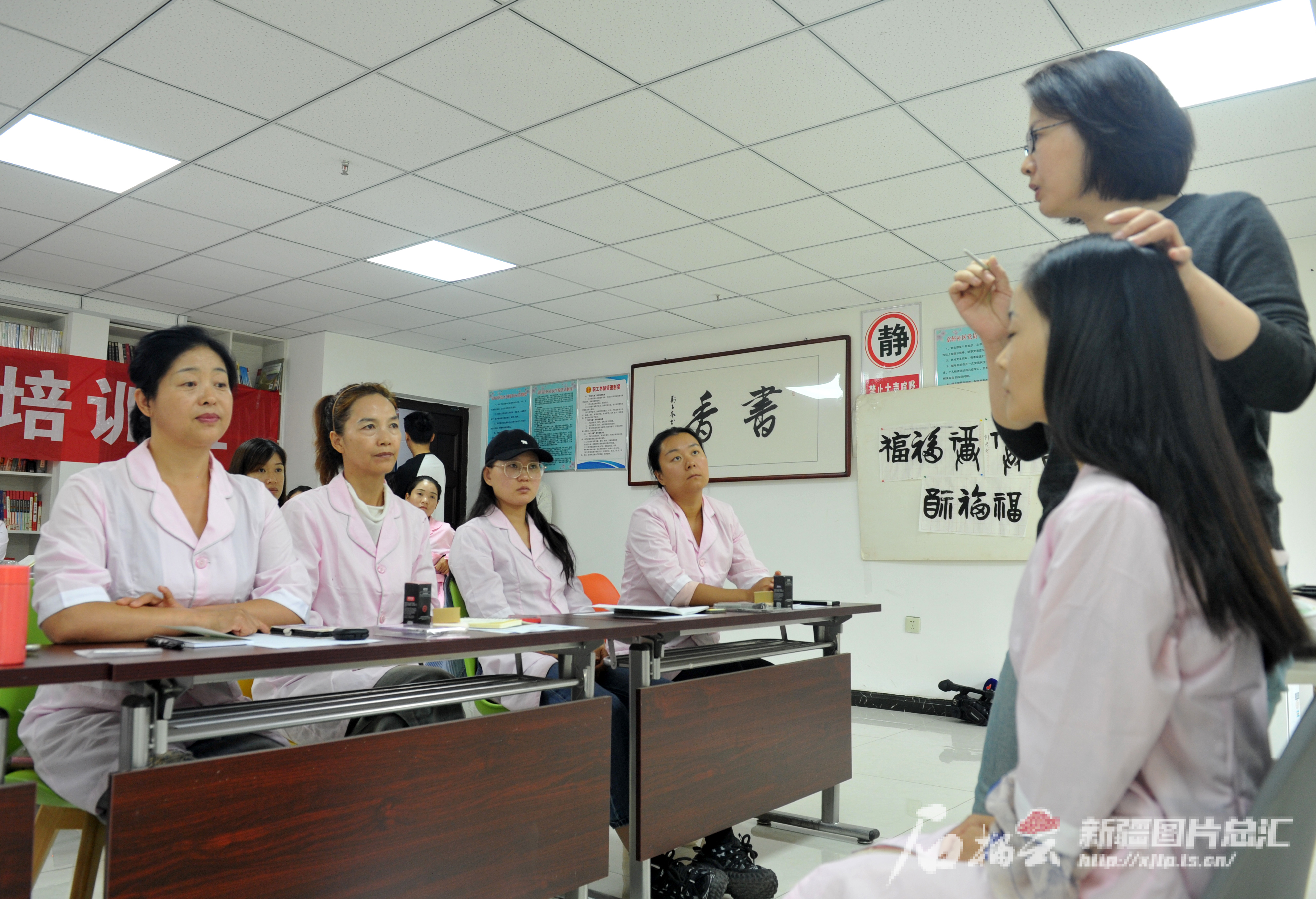 A+ A. A-9月3日, 新疆北方职业技能培训学校老师曹艳在职业妆设计培训课上给学员上课。