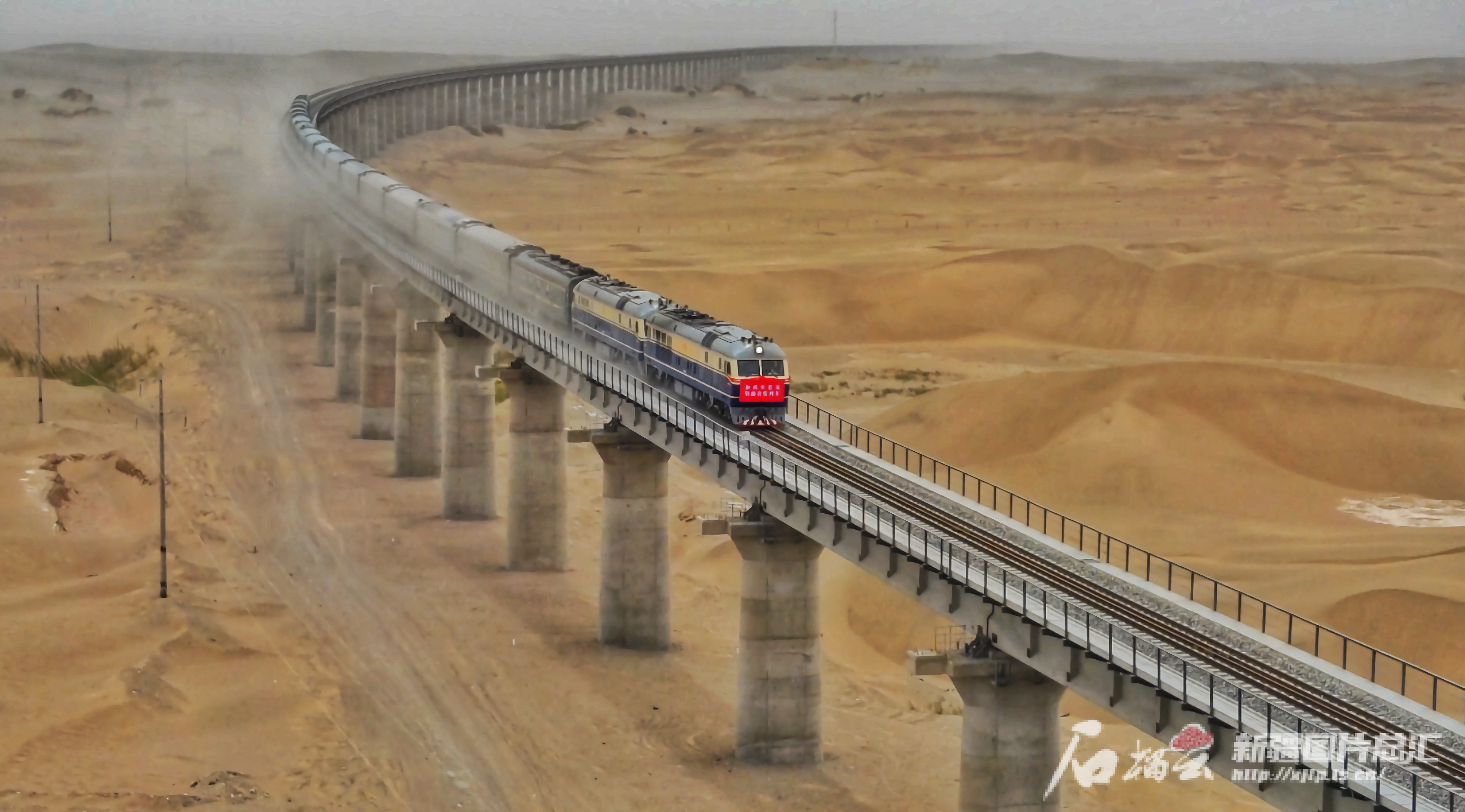 和若铁路地处塔克拉玛干沙漠南缘,有534公里分布在风沙区域,占线路总长65%。