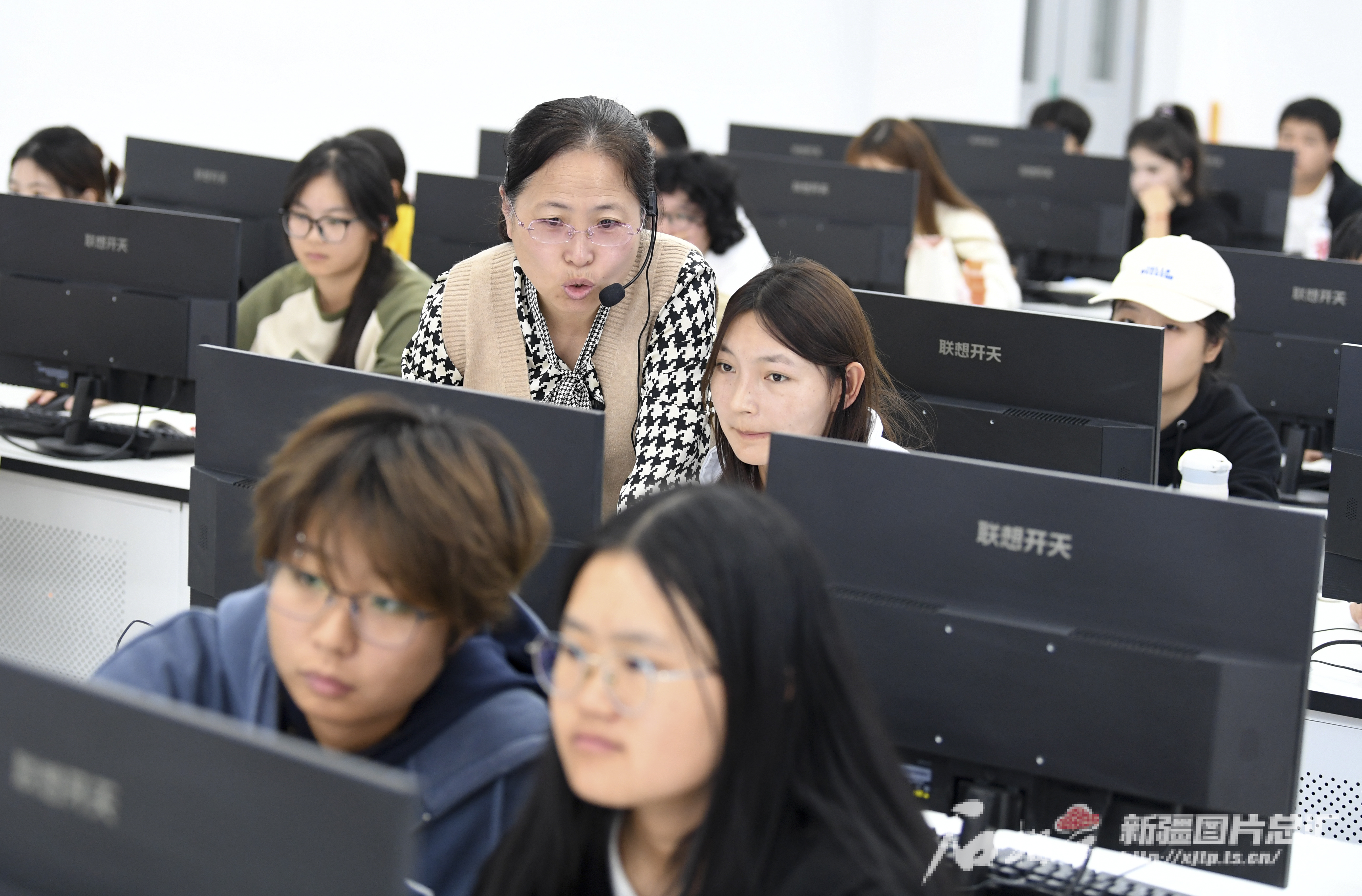 10月30日,新疆和田学院教师在给学前教育专业的学生做辅导。