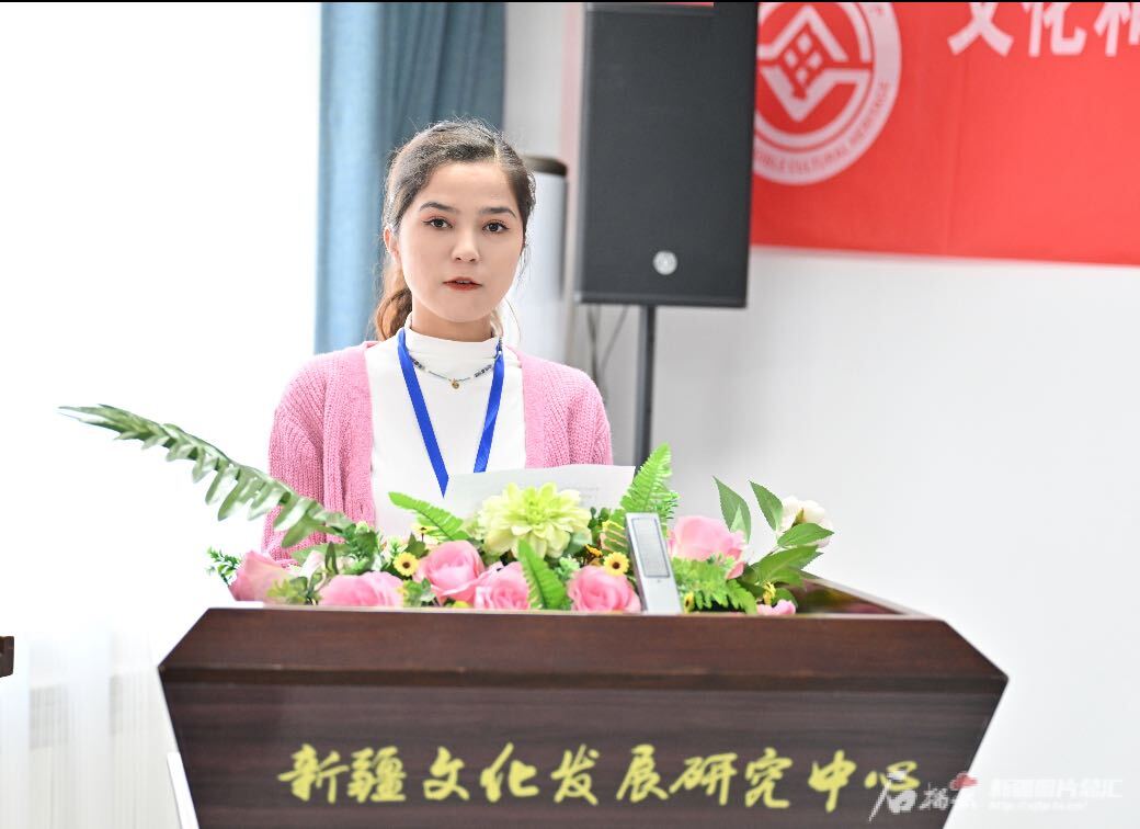 学员排尔威再·阿卜力克木在开班仪式上发言。新疆大学新疆文化发展研究中心非遗研培项目组摄