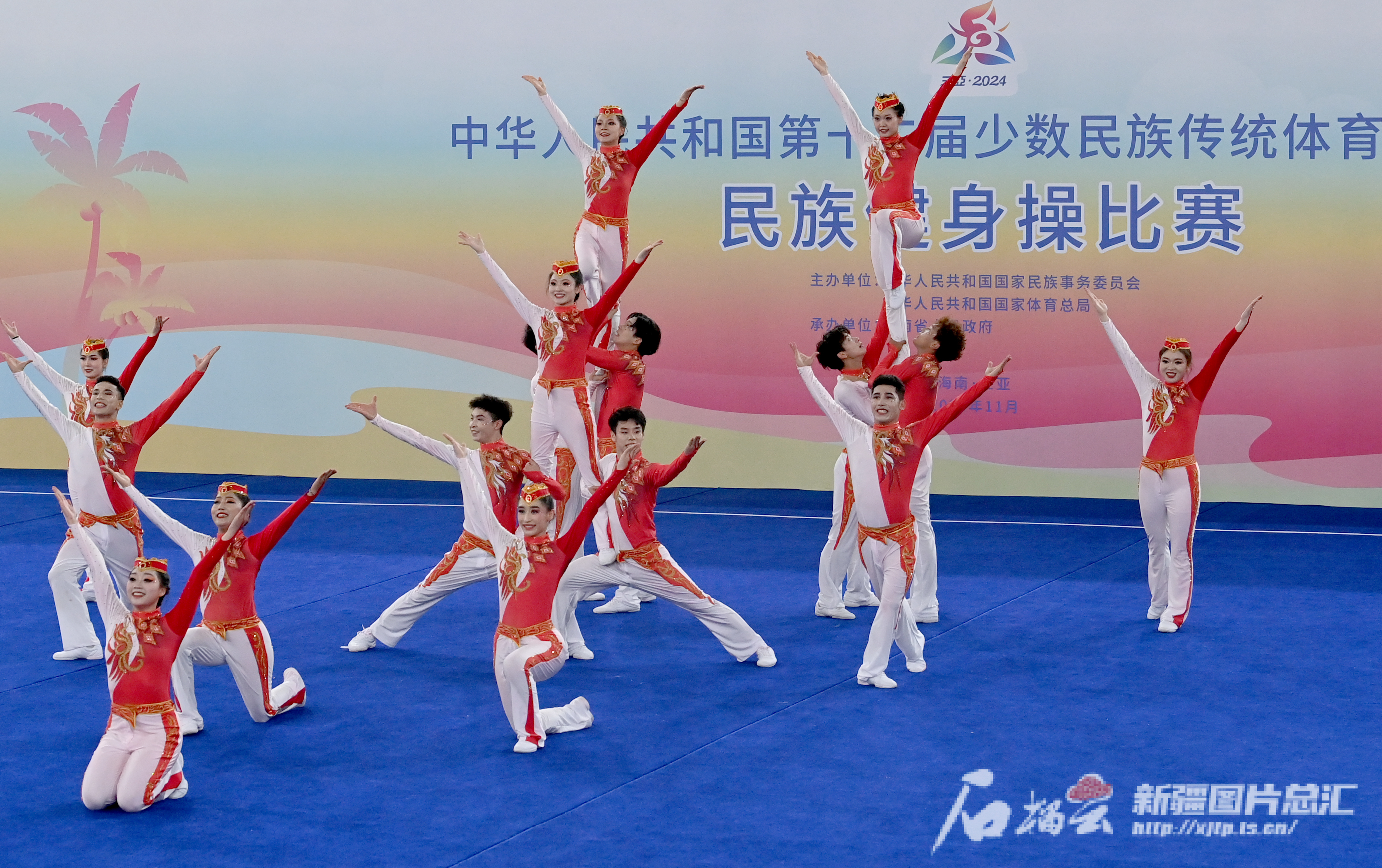 11月25日,新疆民族健身操队队员在进行比赛。