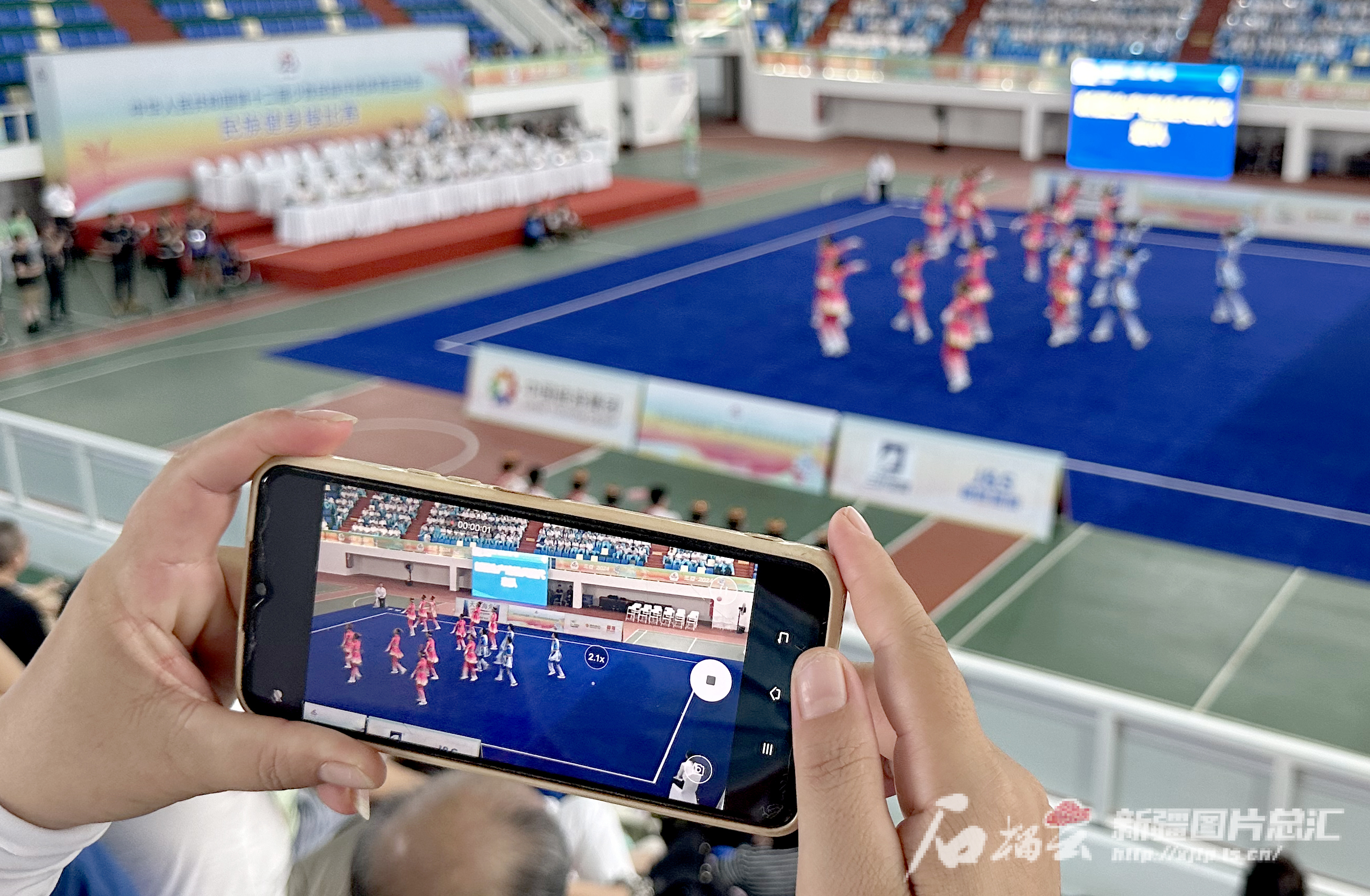 11月25日,观众拍摄民族健身操比赛。