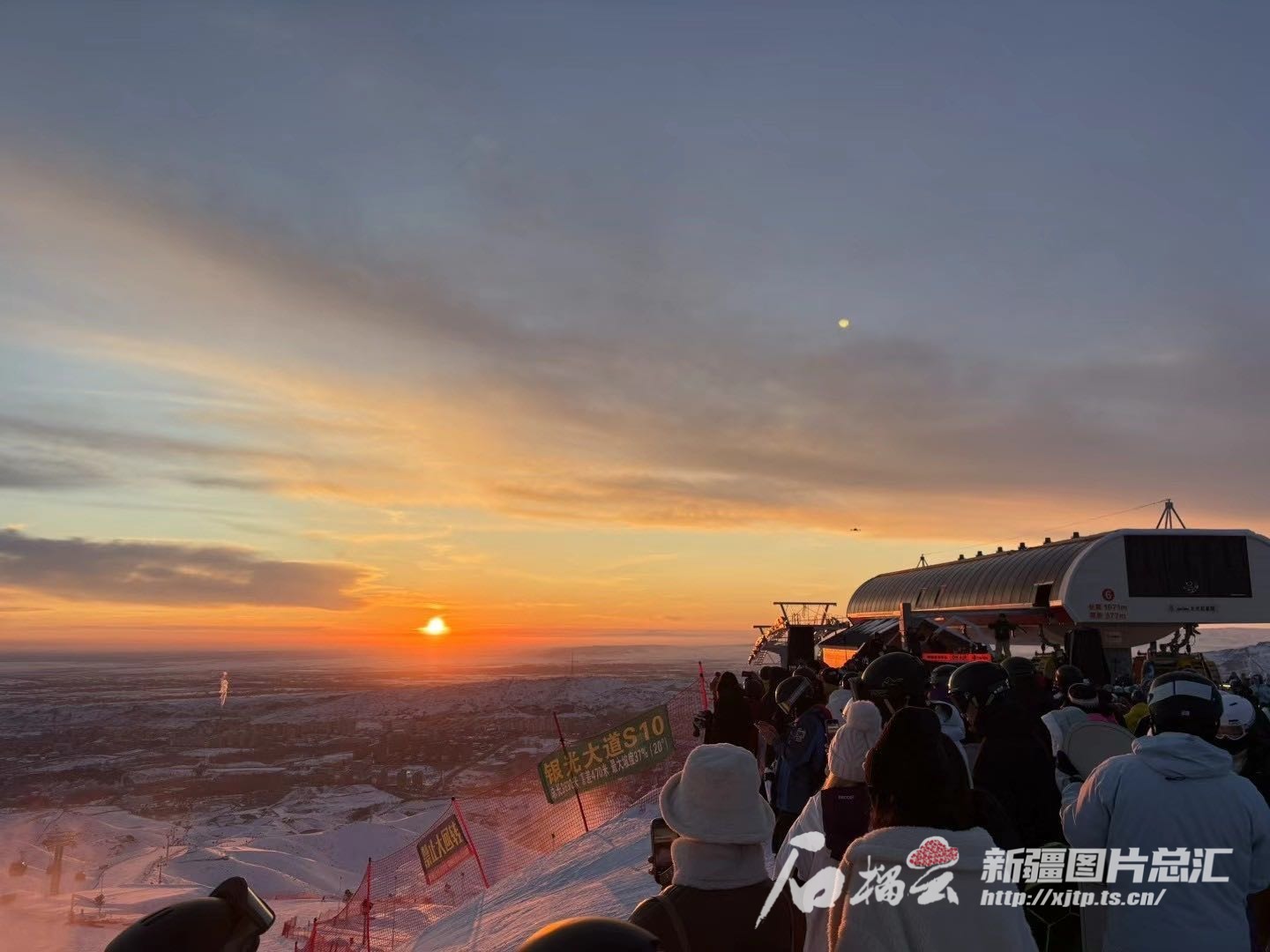 2024年11月,在阿勒泰将军山国际滑雪度假区,落日时刻,是雪场人气最旺的时候。天山网-新疆日报 记者王晶晶摄