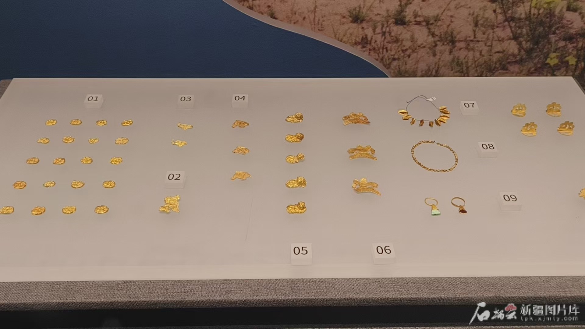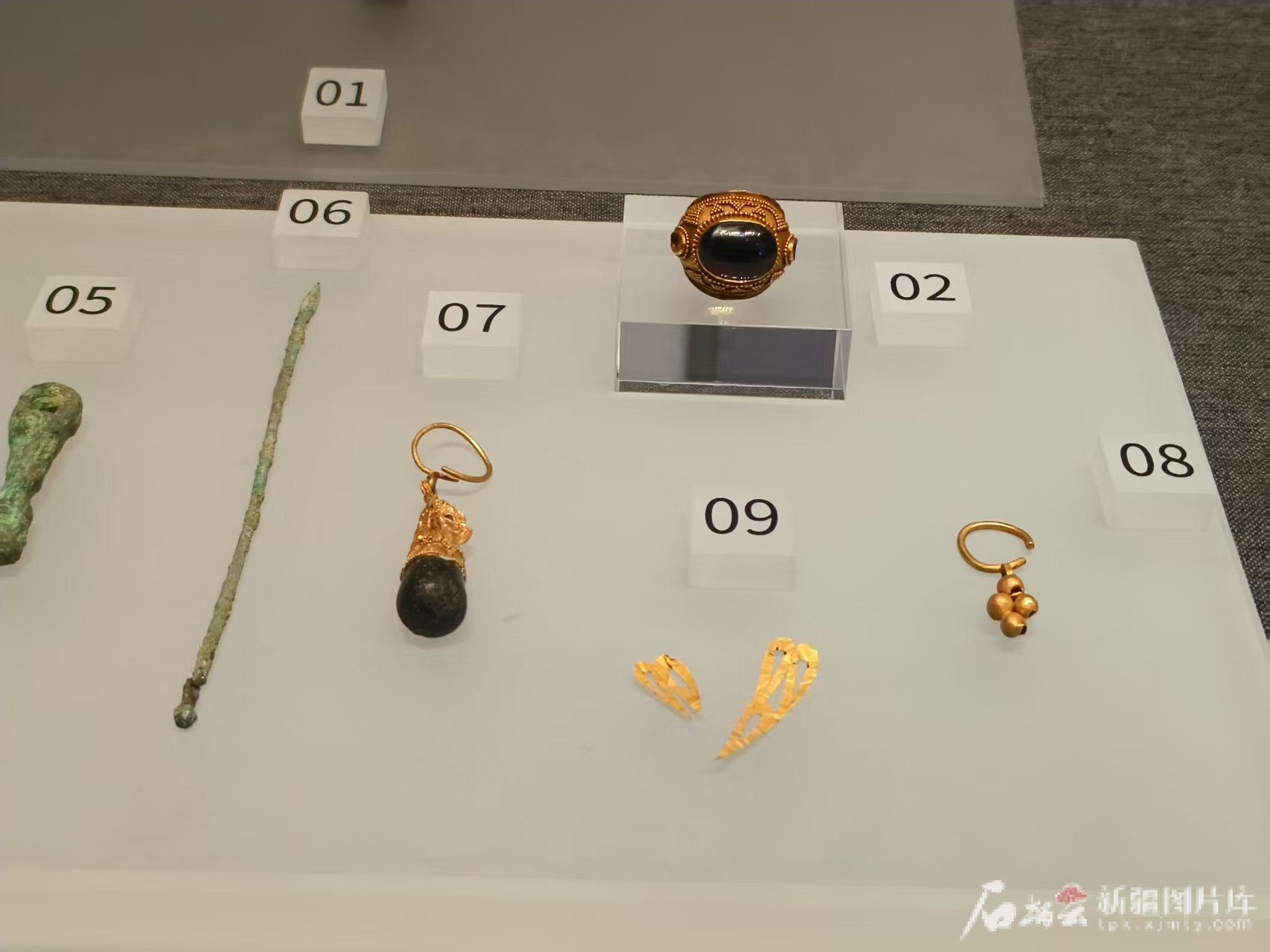 新疆博物馆展出的镶嵌宝石金戒指、镶嵌宝石金耳环等饰品。天山网-新疆日报记者 王新红摄