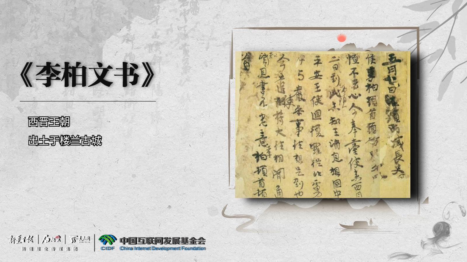 《李柏文书》出土于楼兰古城,是西晋王朝的西域长史李柏写给焉耆王龙熙的书信,大致意思是:李柏准备出兵攻打叛军赵贞,叫龙熙不要恐慌,也不要跟着赵贞逃跑。