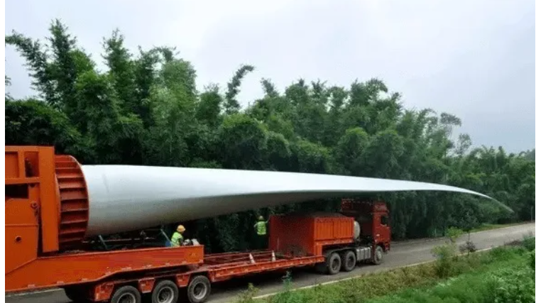 风力发电机叶片运输过场面。图源:网络