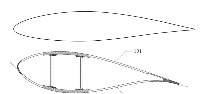 上方为飞机机翼侧剖图,下方为风力发电机叶片侧剖图。图源:网络