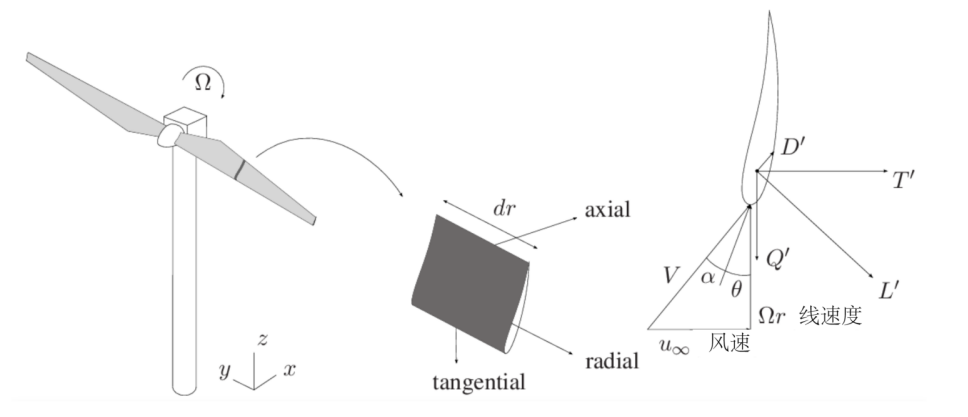 转动叶片的攻角分析,要考虑风速和转动线速度的叠级。图源:参考文献[3]