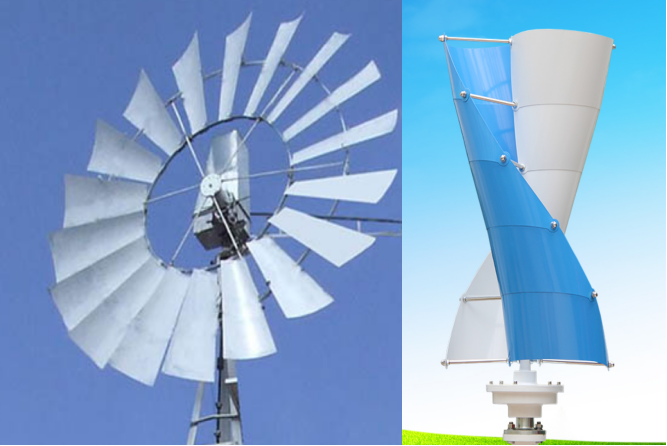 左边为水平轴阻力型风力机,右边为垂直轴阻力型风力机,有较大的迎风面。图源:网络