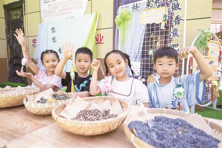 近日,昌吉市第九幼儿园组织小朋友包粽子、编彩绳、画粽子、制作香囊,让孩子们在活动中了解端午传统民俗,感受传统文化的独特魅力。□中国昌吉网记者 何 龙摄