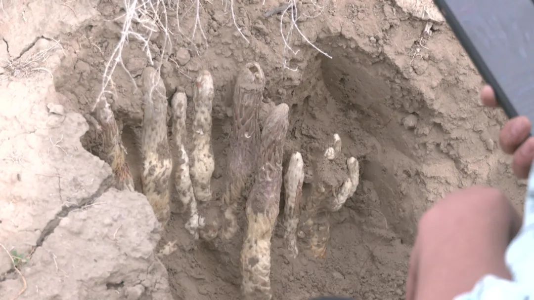 走进六户地镇杨家道村种植基地,胡亚东正通过网络直播的方式,向网友介绍大芸的生长特点和品质,现场演示大芸的采挖方法,吸引了不少网友提前预订。