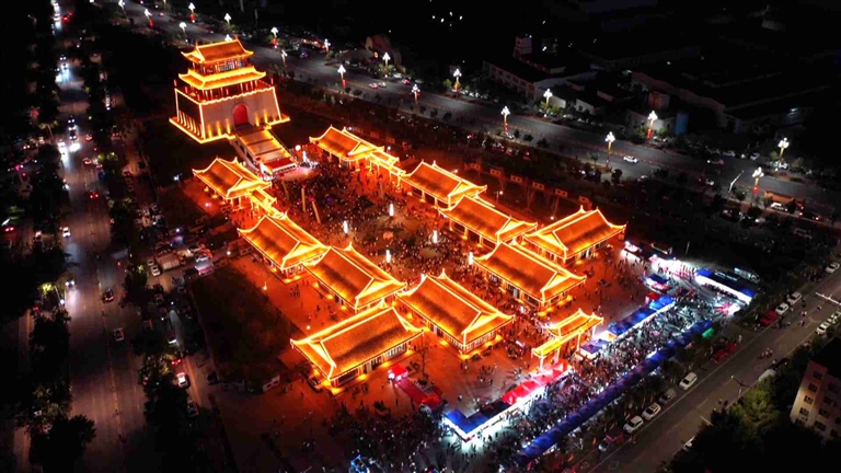 图为玛纳斯县靖远楼及八大会馆夜景。赵善宾摄