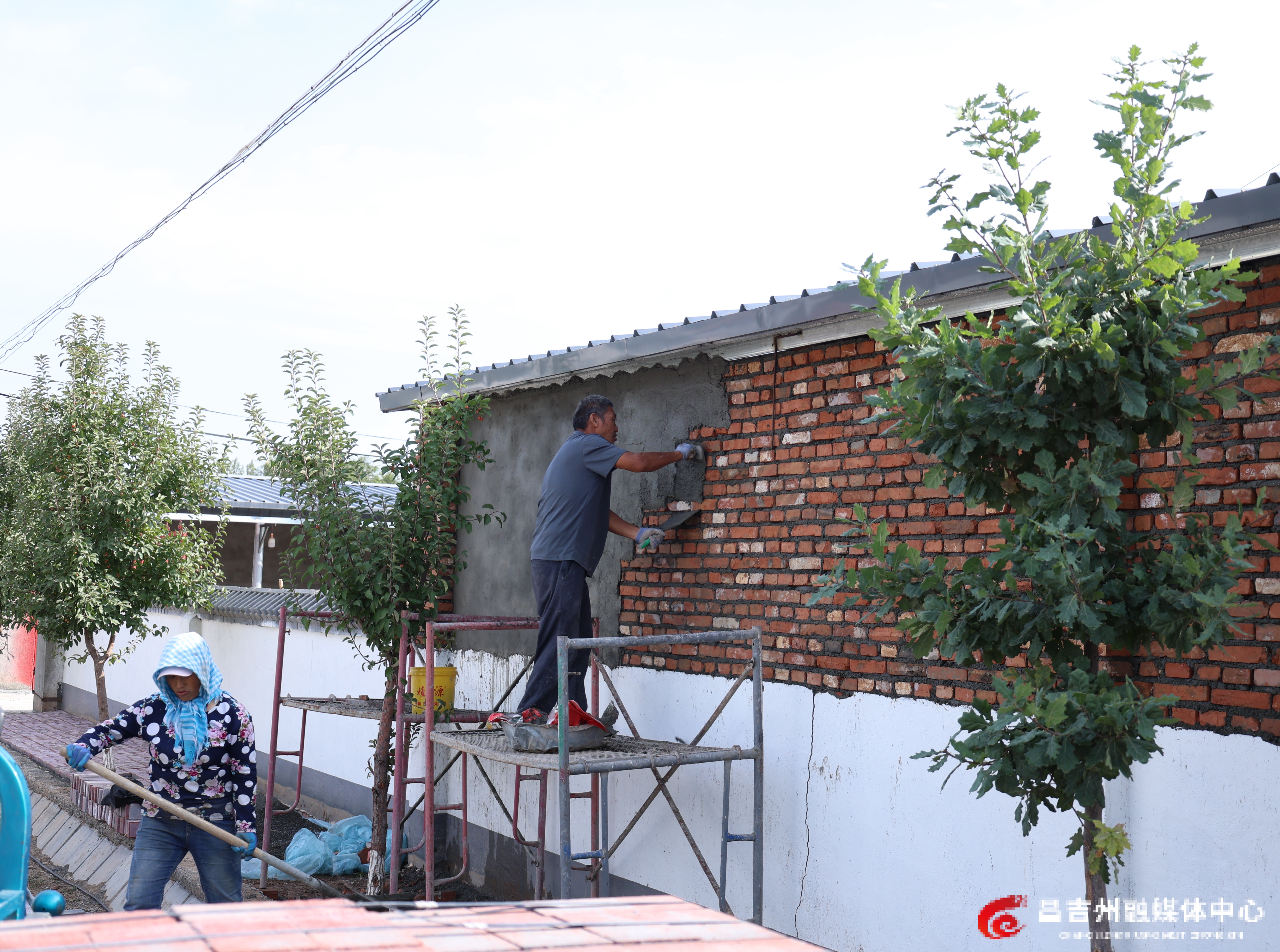 9月17日,玛纳斯县乐土驿镇郑家庄村村民在修缮自家庭院。记者付小芳 摄